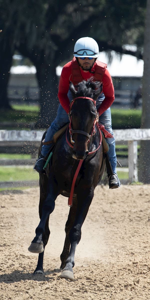 Thoroughbred horse training on a racetrack in Ocala, Florida