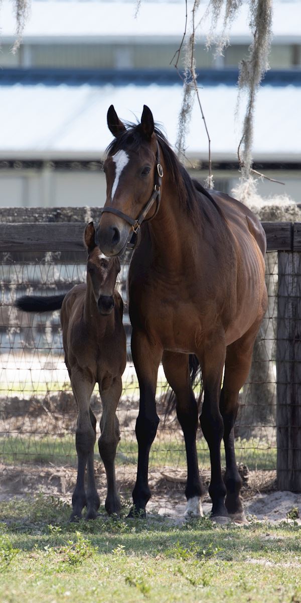 A thoroughbred horse with its foal