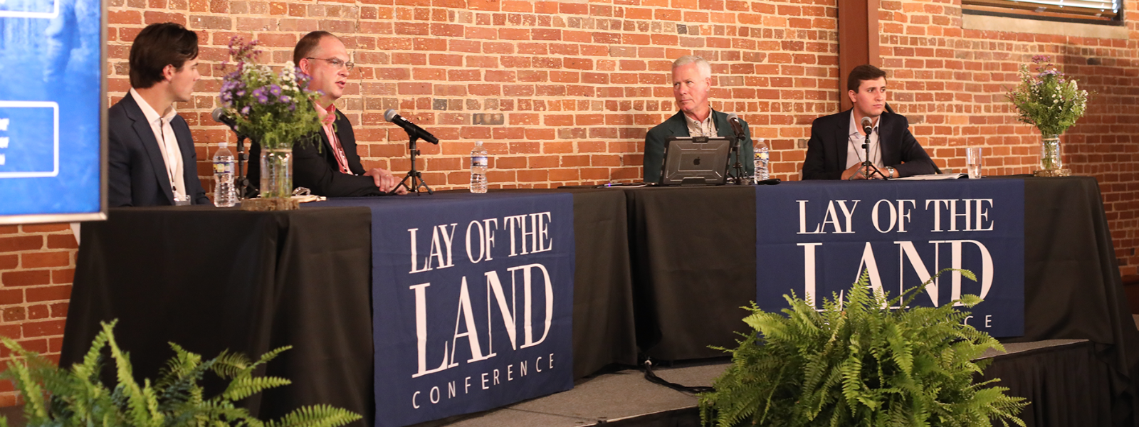 Adam Bellflower, Brandon DuRant, Don Clark, and Chap Shuman discuss discuss the availability and value of Georgia farmland at the 2025 Lay of the Land Conference.